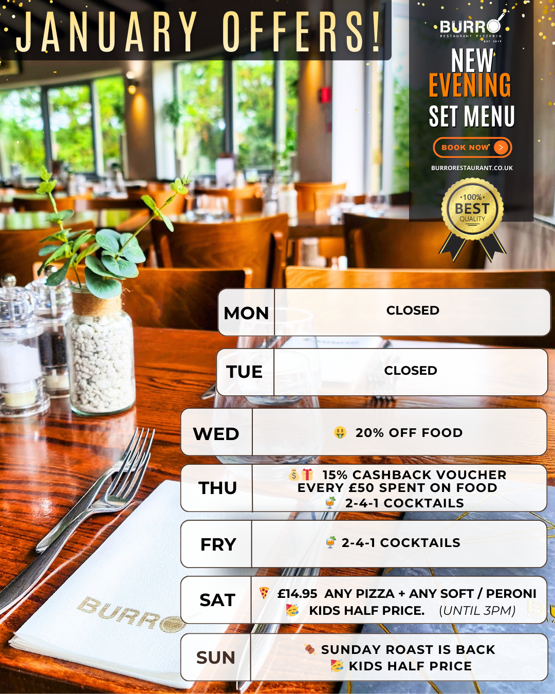 FROM THE FINEST QUALITY ITALIAN DISHES TO OUR EXTENSIVE WINE AND DRINK MENU, BURRO OFFERS THE VERY BEST FOOD AND DRINK, SEVEN DAYS A WEEK.